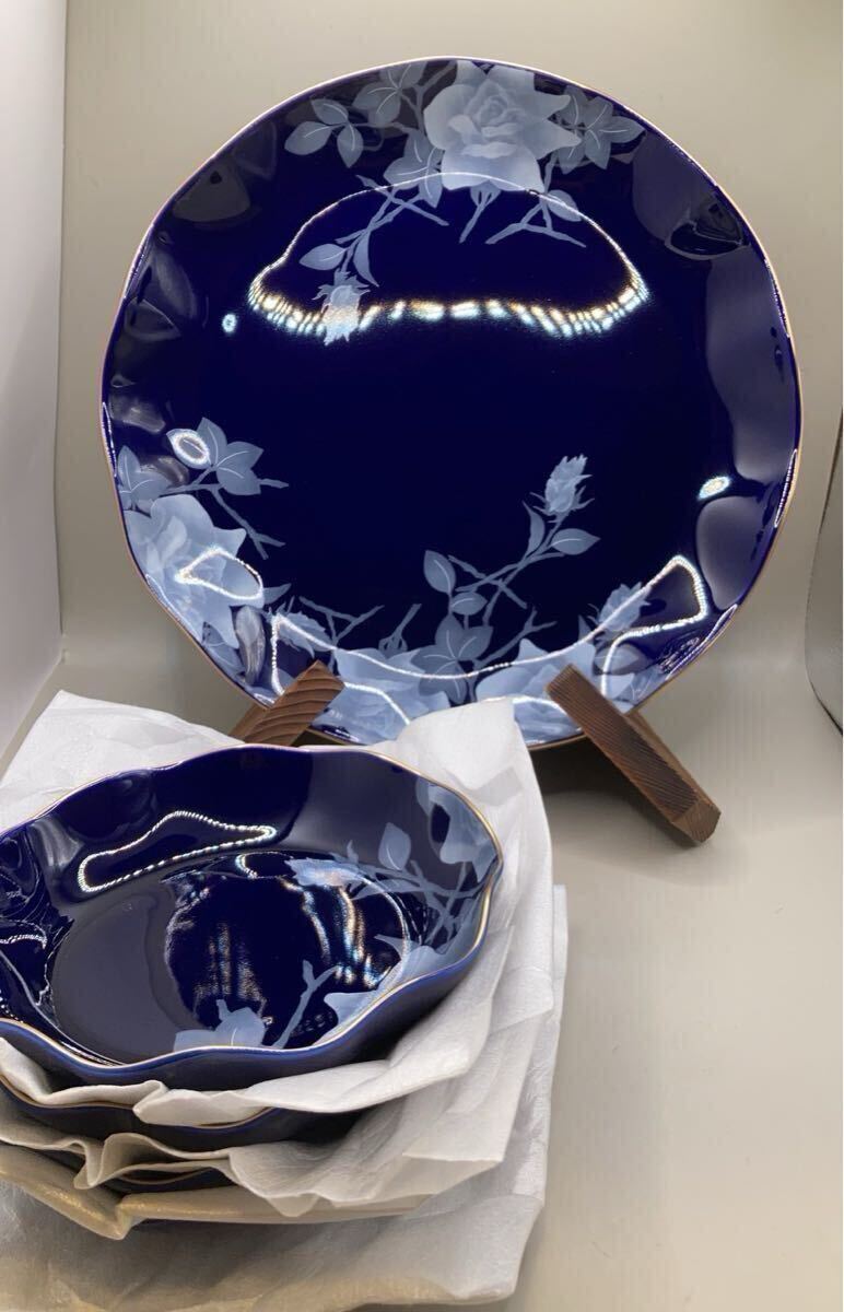 - △ 香蘭社 大皿 銘々皿 ルリ薔薇 パーティーセット 瑠璃 金彩 箱つき △290948