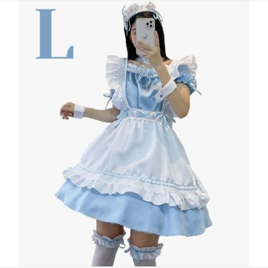 - 新品未使用 Lサイズ メイド服 セクシー コスプレ衣装 ロリータ レディース エプロン ドレス アリス風 コスチューム 仮装 学園祭 水色