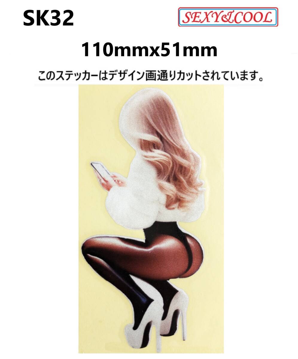 > SK32-12 キラキラ 美脚 スレンダー ハイヒール 白 後ろ姿 スマホ セクシーガールステッカー セクシーステッカー レトロ ギター かわいい
