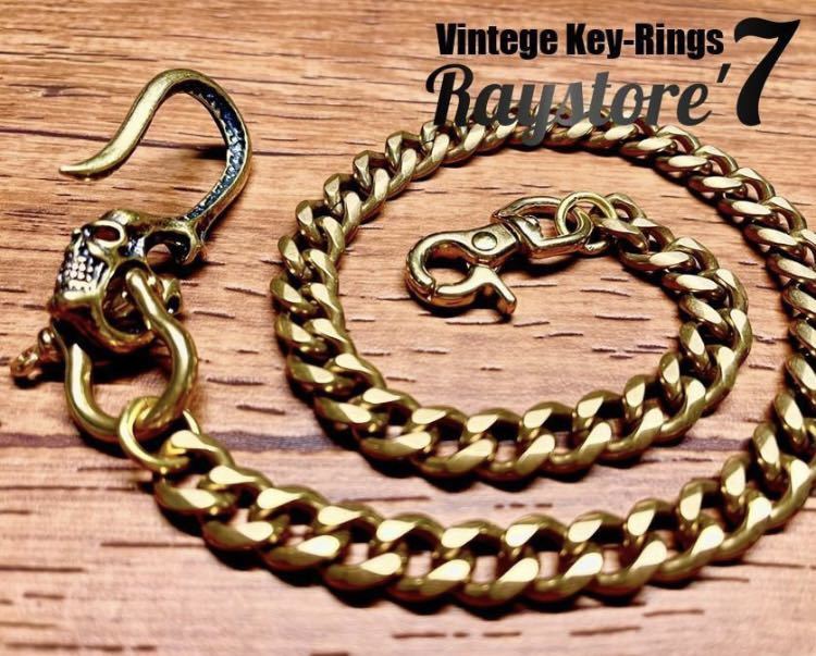 - 真鍮 ウォレットチェーン ヴィンテージ キーリング スカル 新品