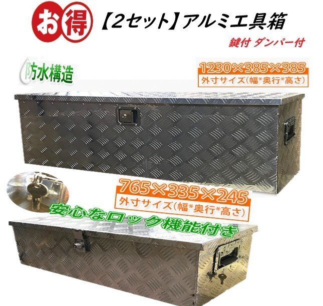 > ★送料無料【大小2個セット】アルミ工具箱1230×385×385mmとアルミ工具箱 760×320×250mm 鍵付 ダンパー付 工具ボックス 【予5月中発】