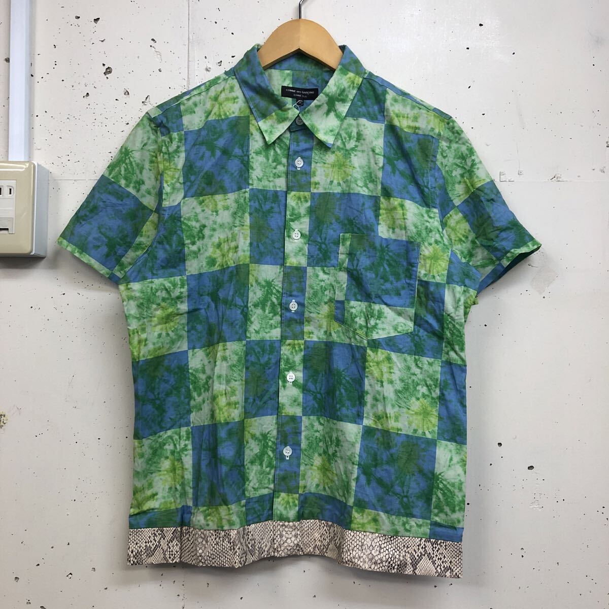 > AD2001 COMMEdesGARCONS HOMME PLUS コムデギャルソン オムプリュス 切り替え シャツ 半袖 サイズM グリーン コットン 日本製