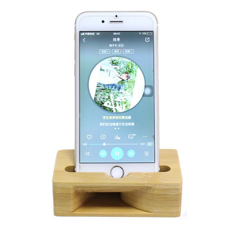 - 天然竹素材 スマホスタンド スピーカー iPhone android ブラウン
