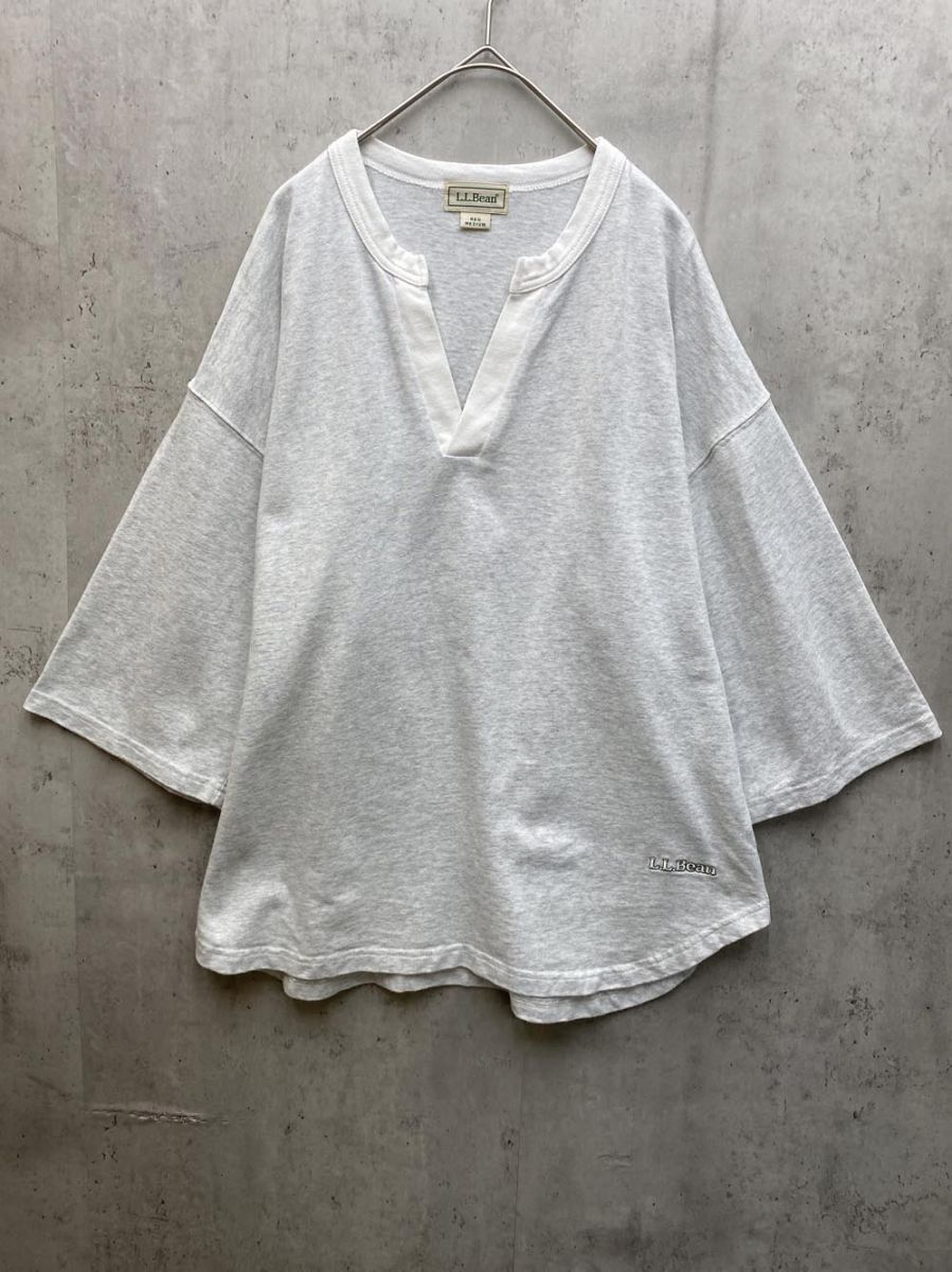 - ゆうパケットOK L.L.Bean エルエルビーン 3275-2121 カフタンチュニック スプリットネック 半袖 Tシャツ sizeM/グレー ■◆