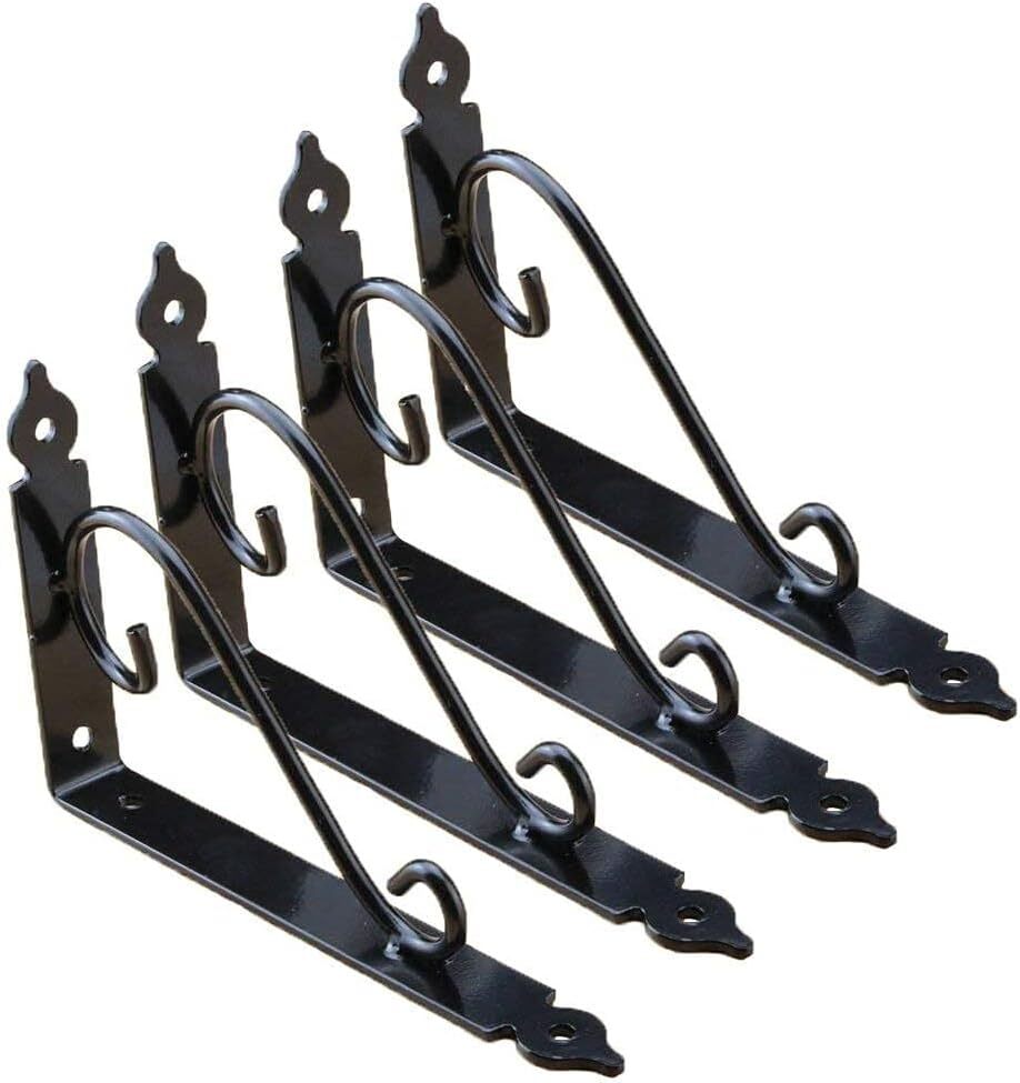 - アンティーク アイアンブラケット L型 棚受け 金物 シェルフ 4枚セット入れ ネジ付き 200mm, ブラック