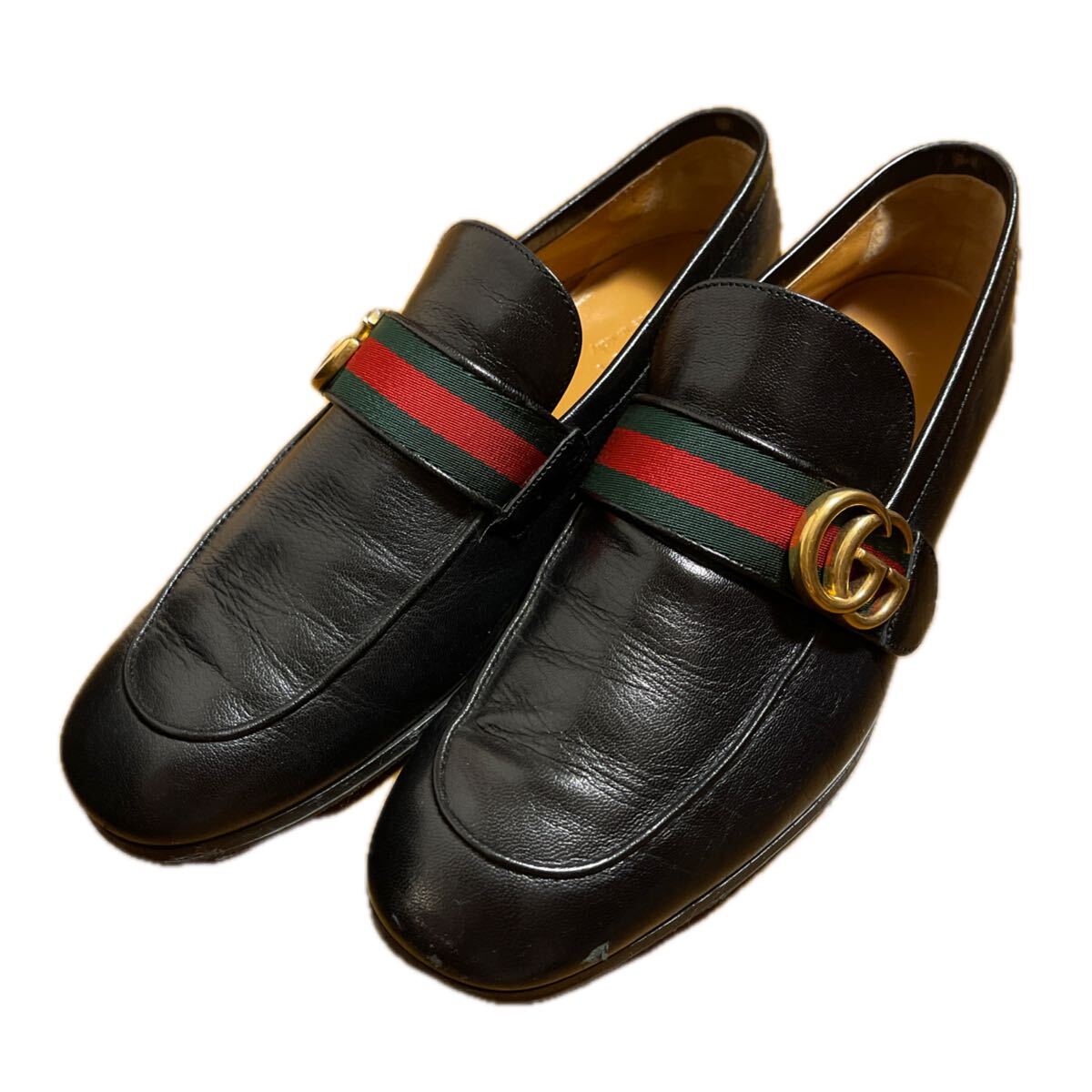 > GUCCI グッチ GGマーモント レザー シェリーライン 本革 ローファー メンズ 7 26cm 革靴 ブラック スリッポン