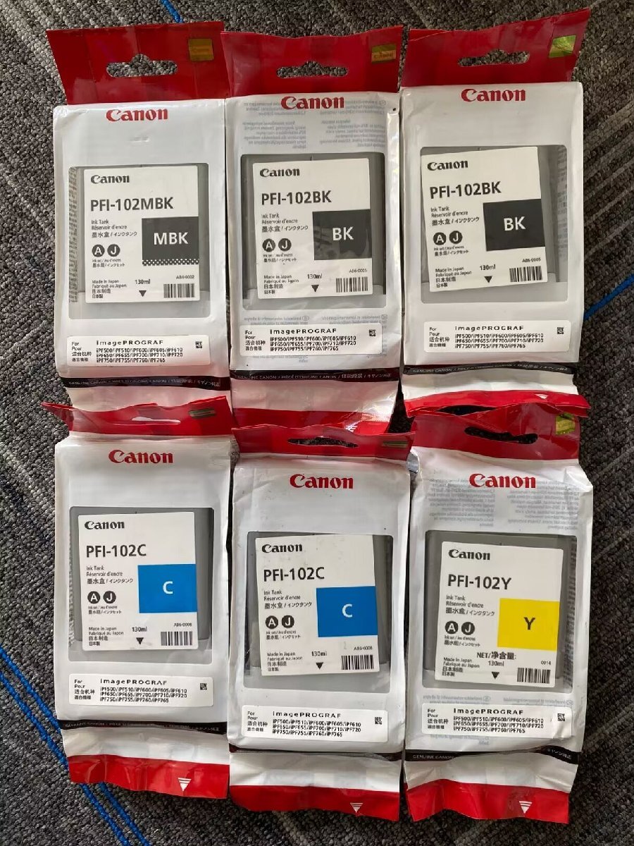 > ★未開封★純正未使用Canonキャノン インクタンクPFI-102C 102Y 102BK 102MBK 130ml 6点★IPF500/IPF650/IPF750等対応★X108