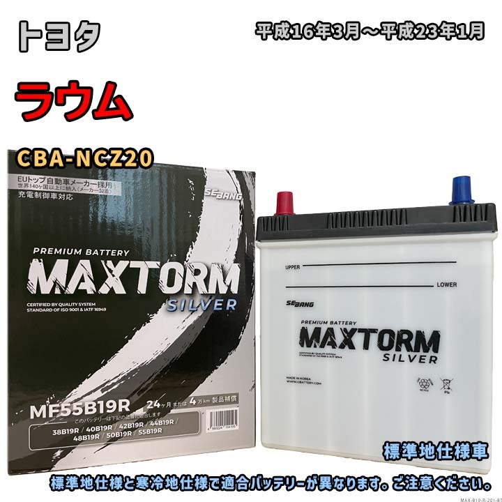 > バッテリー MAXTORM MAX-MF55B19R トヨタ ラウム CBA-NCZ20 平成16年3月~平成23年1月 充電制御車 B19Rタイプ 201