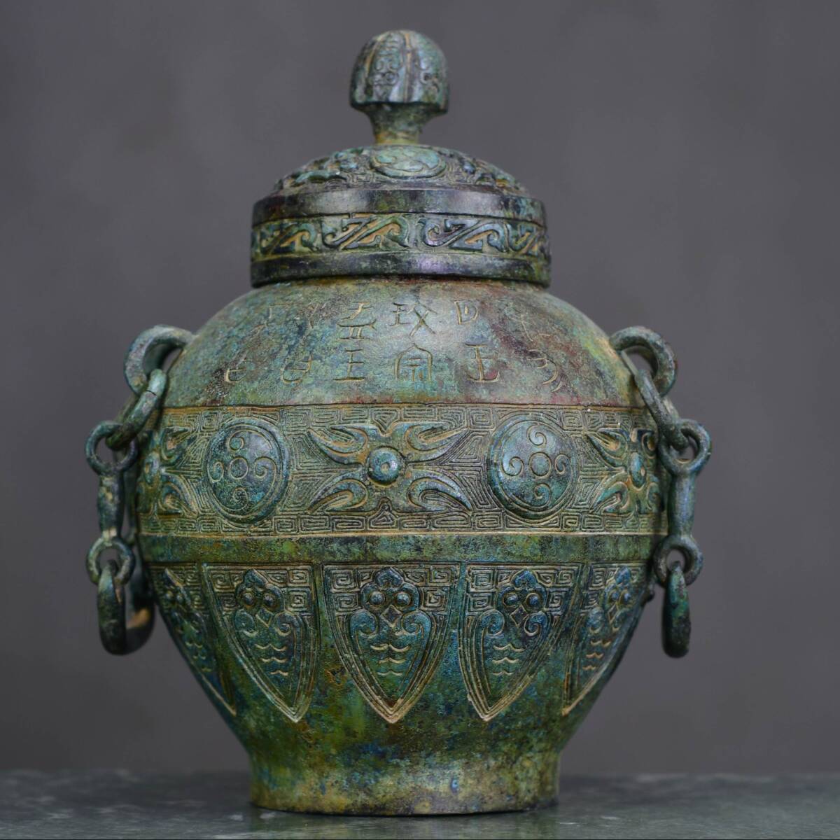 - 『戦・青銅製・青銅器・チェーン罍・酒器・食器・祭祀品・副葬品』極細工 置物 古賞物 中国古玩 中国古美術