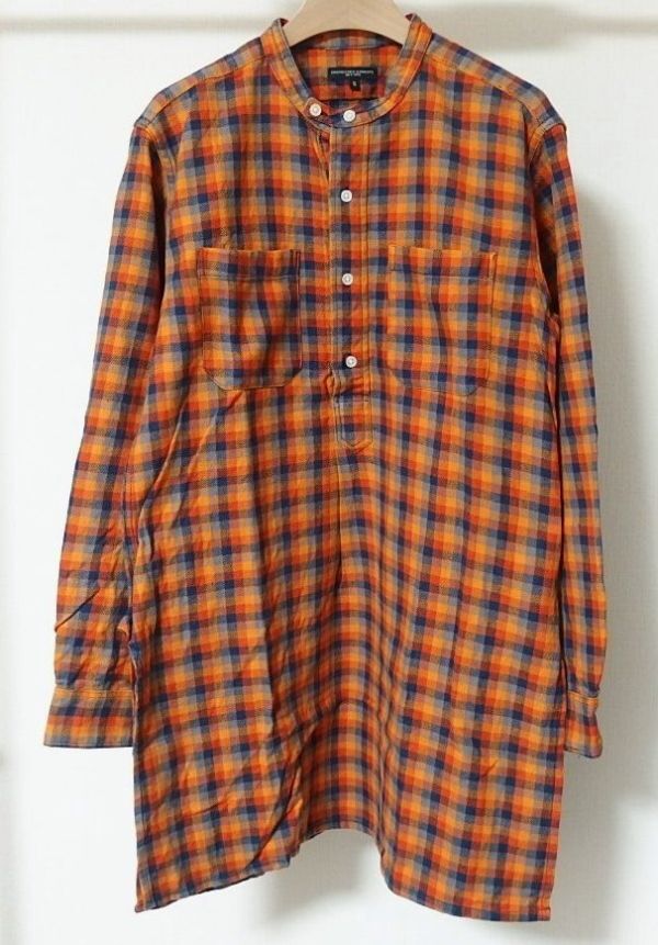 - Engineered Garments エンジニアードガーメンツ Banded Collar Long Shirt Twill Plaid チェック バンドカラー ロング シャツ S