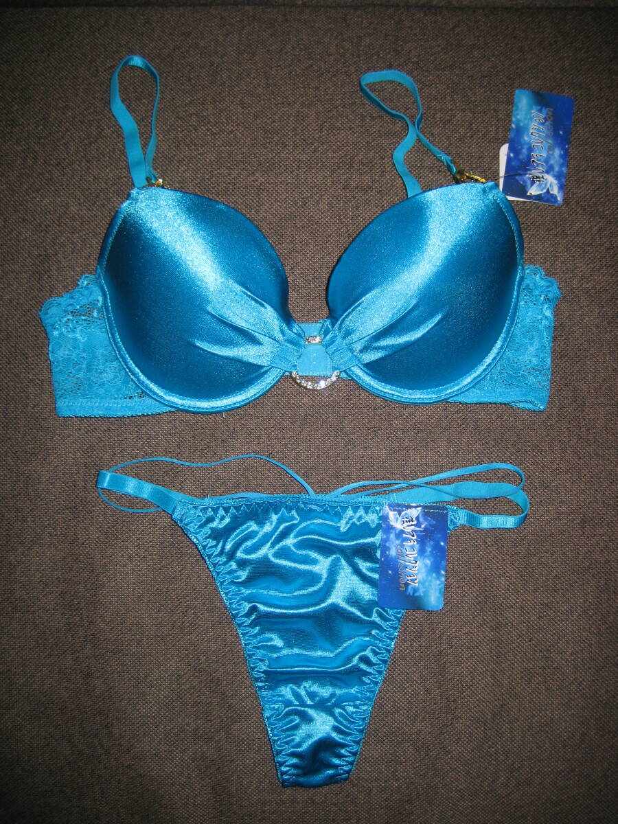 - 超光沢 ツルツル テロテロ サテン ブラ&Tショーツ D65/ターコイズ/Mサイズ/新品タグ付