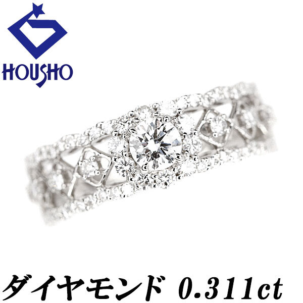 > ダイヤモンド リング ダイヤモンド Pt900 透かし レース フリル スカラップ 送料無料 中古 宝正 901362