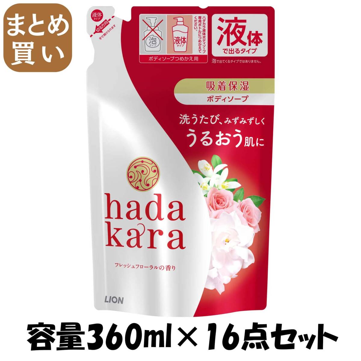 - 【まとめ買い】hadakaraボディーソープ フローラルブーケの香り 詰め替え 容量360ML×16点セット ライオン ボディソープ