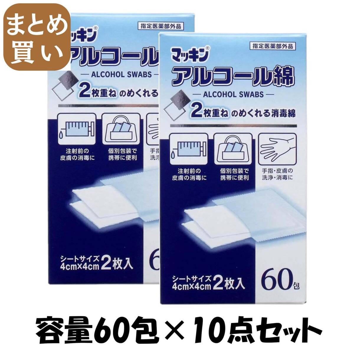 - 【まとめ買い】マッキン アルコール綿 60包入(マッキンワイパー) 容量60包×10点セット 玉川衛材 包帯・ガーゼ