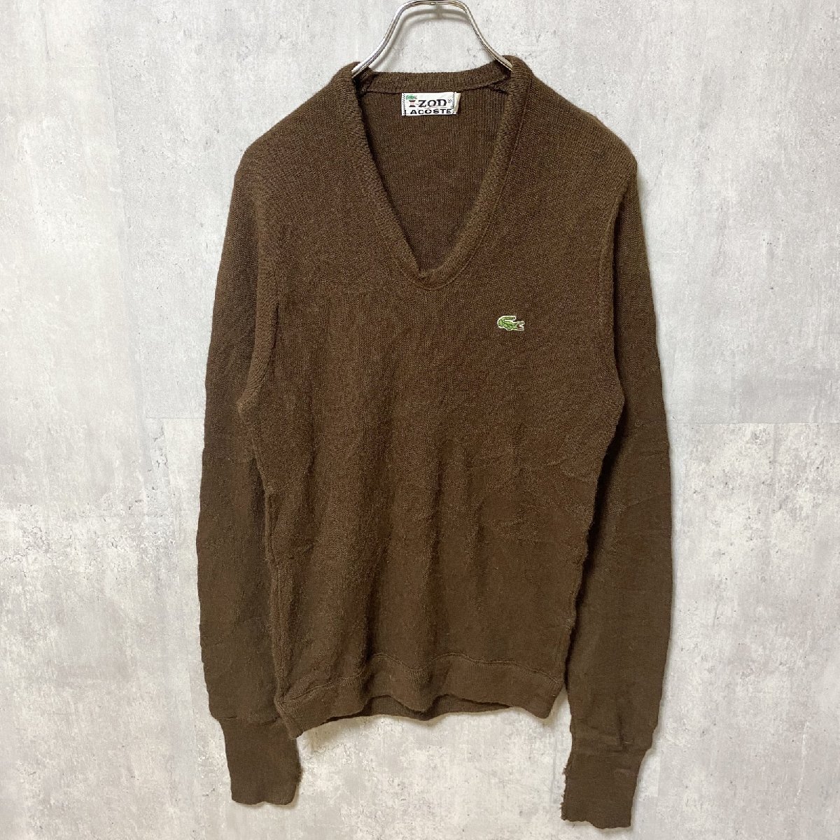 > 古着 used 70s IZOD LACOSTE アイゾッド ラコステ 長袖Vネックセーター ニット ワンポイントロゴ Sサイズ