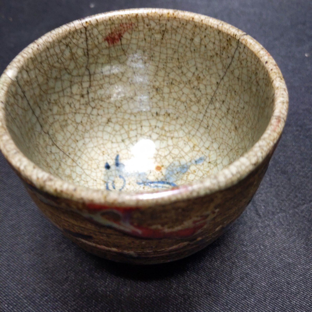 > 654 古大堀相馬焼 茶碗 茶道具 骨董 時代物 青ヒビ 走り駒 約9×9×7.5cm