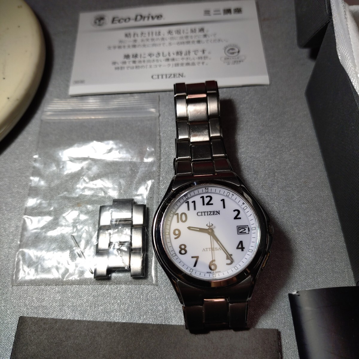- CITIZEN シチズン ATESSA アテッサ ATD53-2847 腕時計 エコドライブ 電波ソーラー カレンダー 動作OK 余りコマ付き