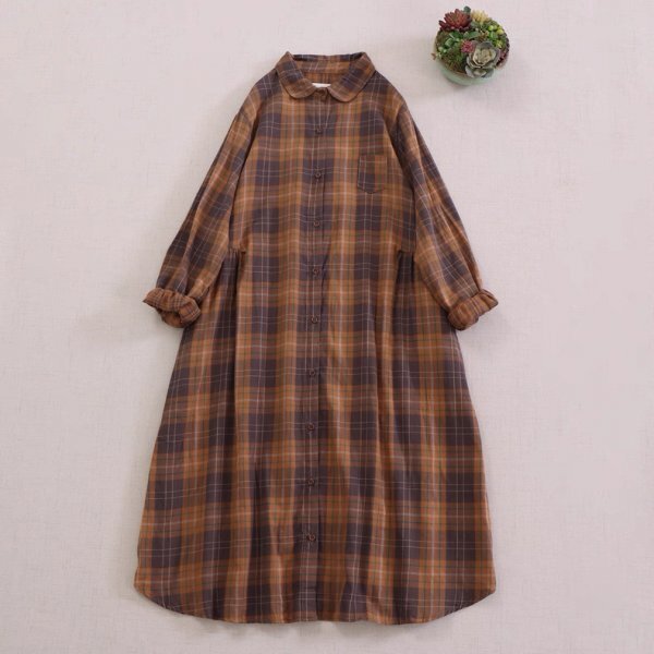 > lb 0708 カーディガン シャツワンピース ダブルガーゼ フリーサイズ チュニック トップス ナチュラル 綿100% 大人可愛 チェック柄1