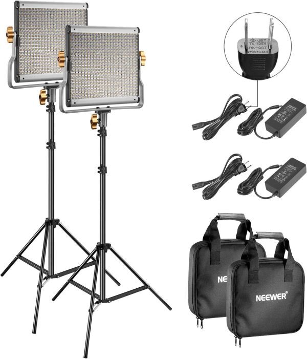 - 送料無料!☆新品★NEEWER 2パック 480 LEDビデオライトとスタンドキット 二色 3200K-5600K CRI 96+ 照明撮影用 Uブラケットと収納ケース付