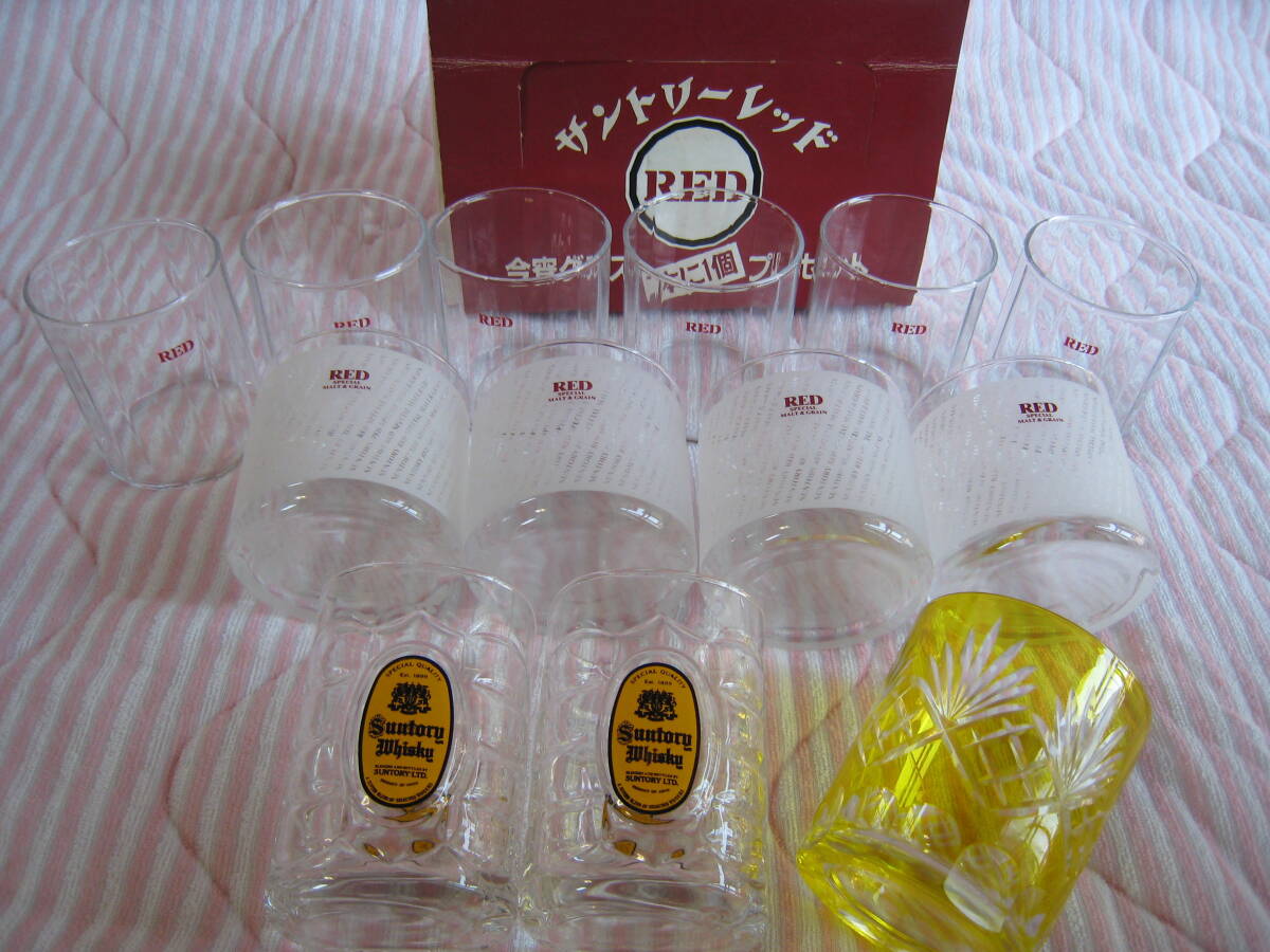 - ◎「未使用・保管品」◎サントリーロックグラス~13個/角瓶/レッド/切子グラスおまけ付き