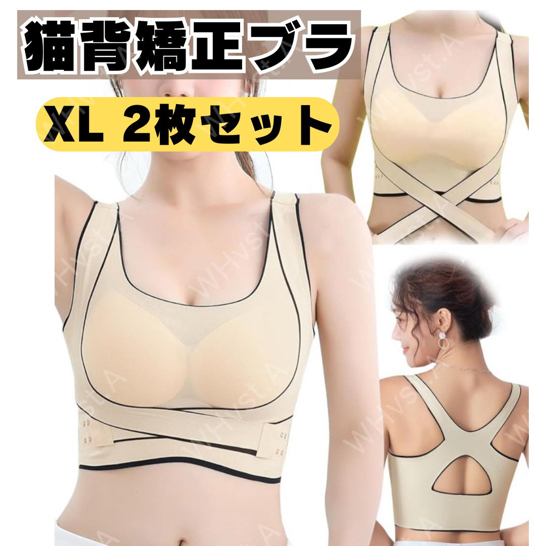 - 姿勢矯正 猫背矯正ブラ 2枚セット XL ベージュ ナイトブラ 補正ブラ 育乳