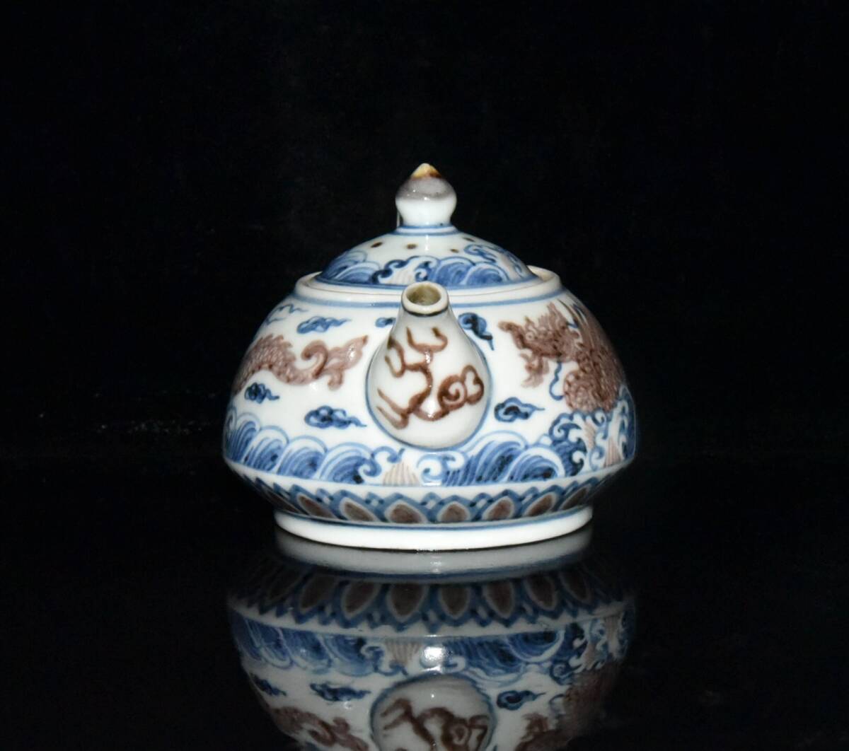 - 蔵友旧蔵出 明 宣德年製款 青花 釉裡紅 龍紋 酒壺 稀少珍品 貴重品 古陶瓷品 置物 古賞物 中国古玩 中国古美術品
