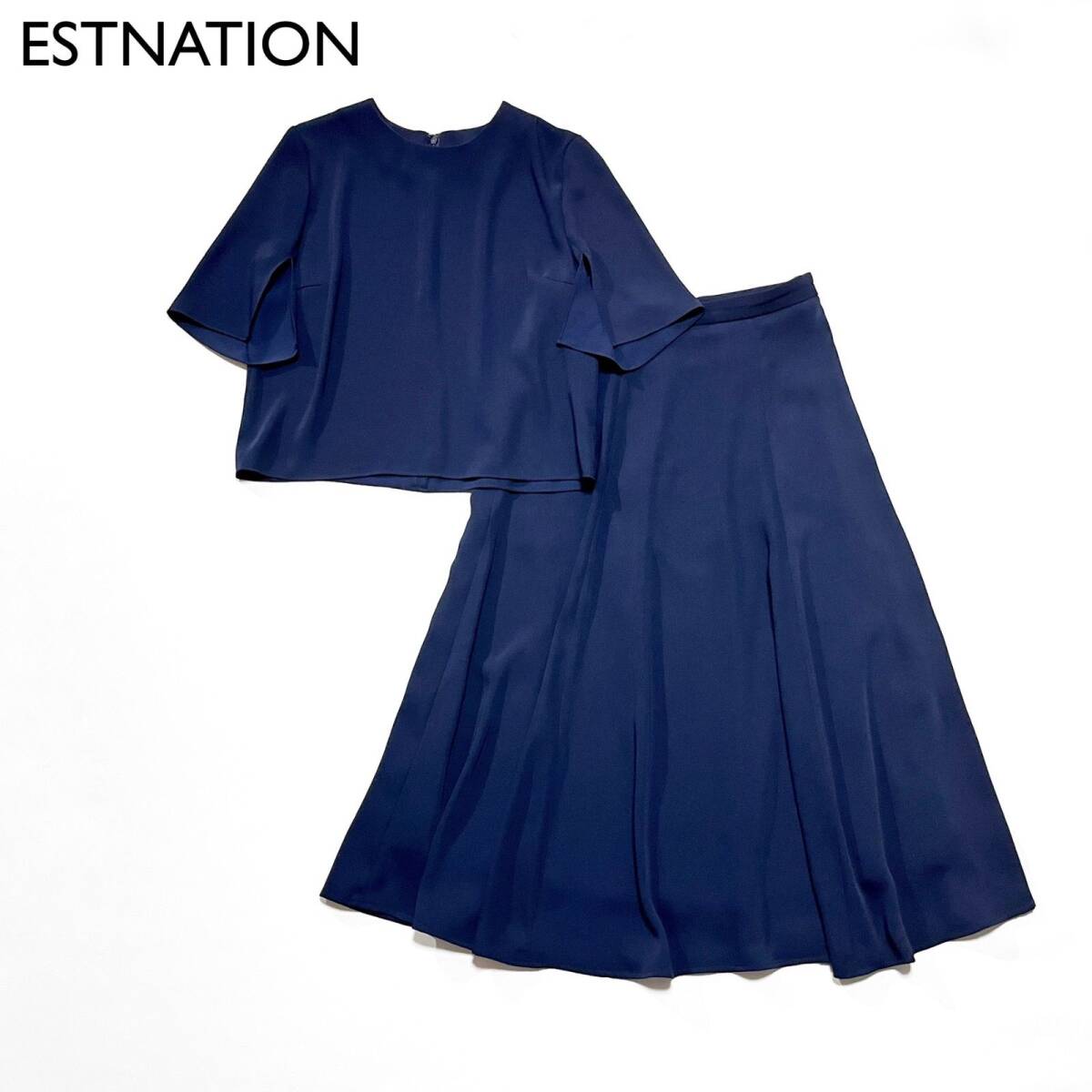 - cg65 ESTNATION セットアップ 2点セット 上下 ベルスリーブブラウス シャツ サテンフレアスカート