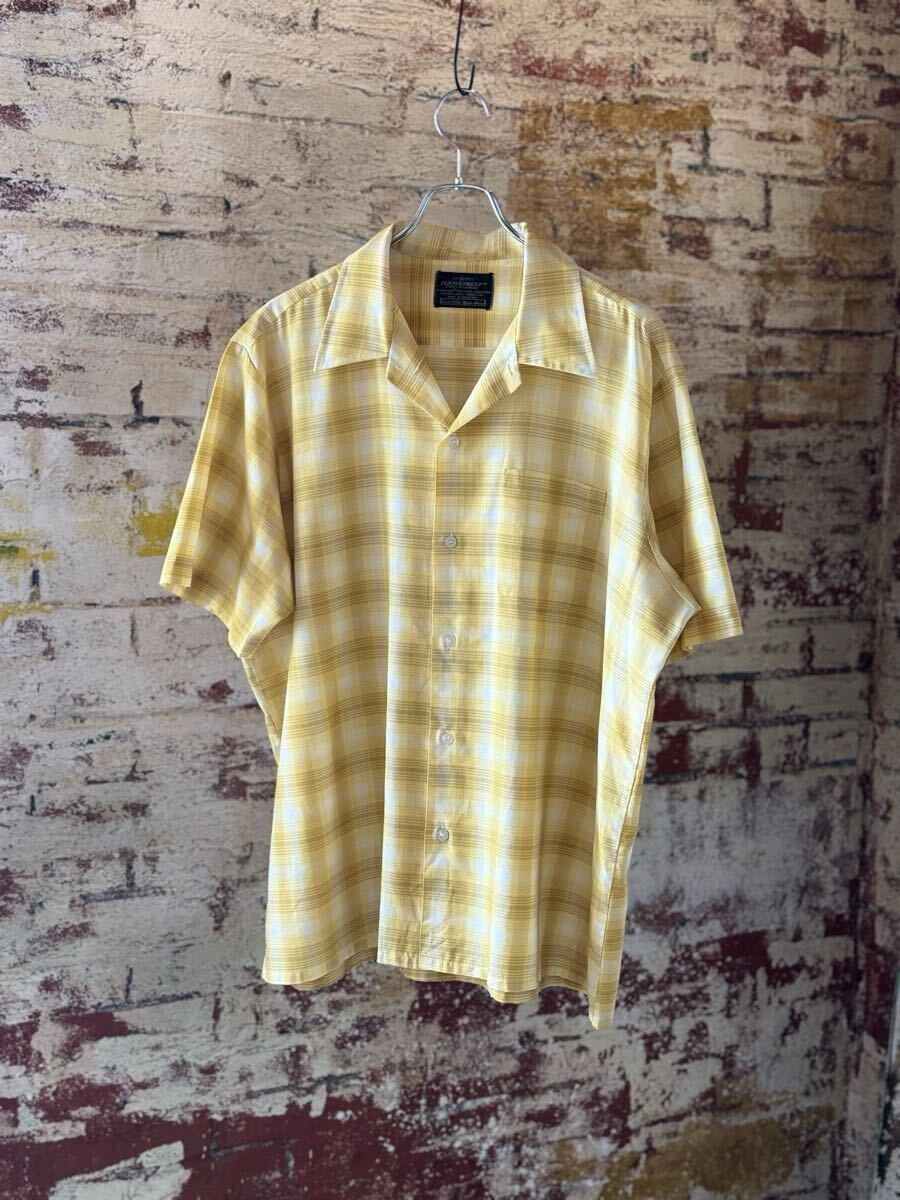 > 70s Sears OPEN COLLAR PLAID SHIRT OMBRE CHECK ヴィンテージ オープンカラーシャツ チェックシャツ オンブレチェック 60s XL 送料無料