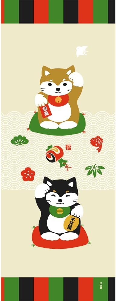 - 濱文様 絵手ぬぐい 招き豆柴 秋 手拭い 90×34cm メール便対応 ポイント消化