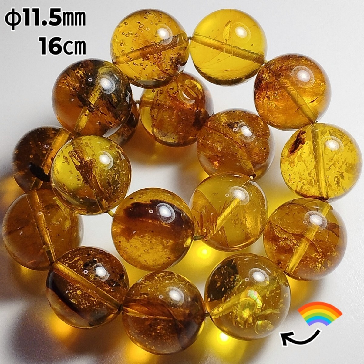 - 高品質 ブルーアンバー 天然琥珀 虹アンバー ブレスレット 11.5㎜ 16㎝