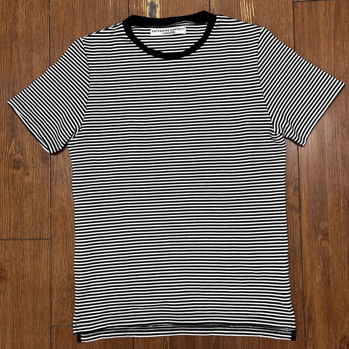 > KATHARINE HAMNET LONDON/キャサリン ハムネット ロンドン メンズ 半袖 Tシャツ M ボーダー 黒×白 a1