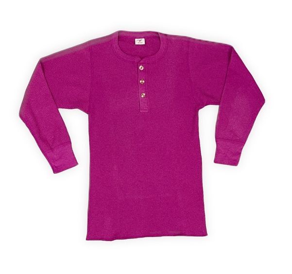 > デッドストック 80's 90's 米国製 GITANO サーマル Tシャツ ヘンリーネック 長袖 綿ポリエステル パープル 紫 M [la-1370]
