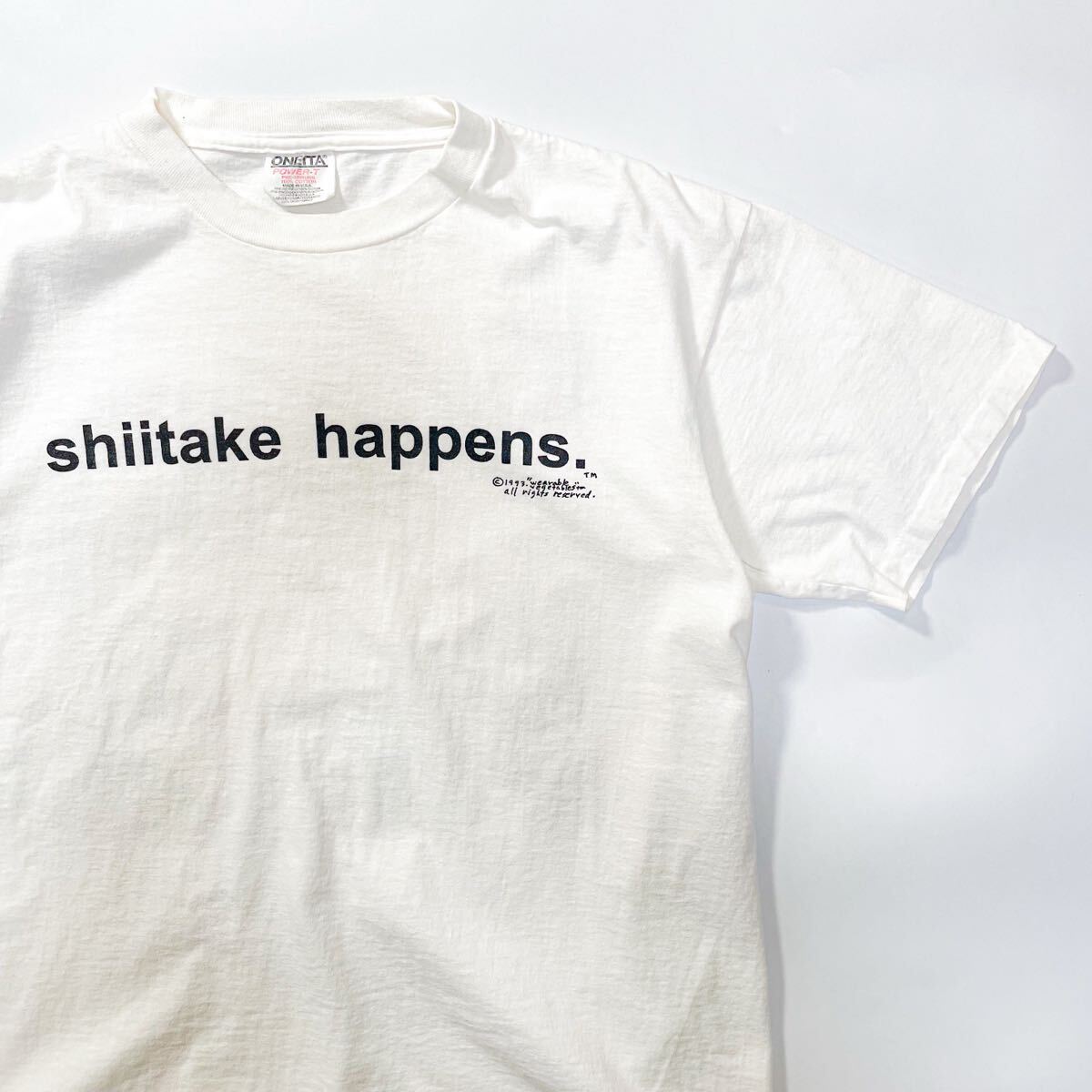 - 90s 80s shiitake happens Vegetable プリントt Tシャツ tee メッセージ ビンテージ usa old L アメリカ製 半袖 oneita シングルステッチ