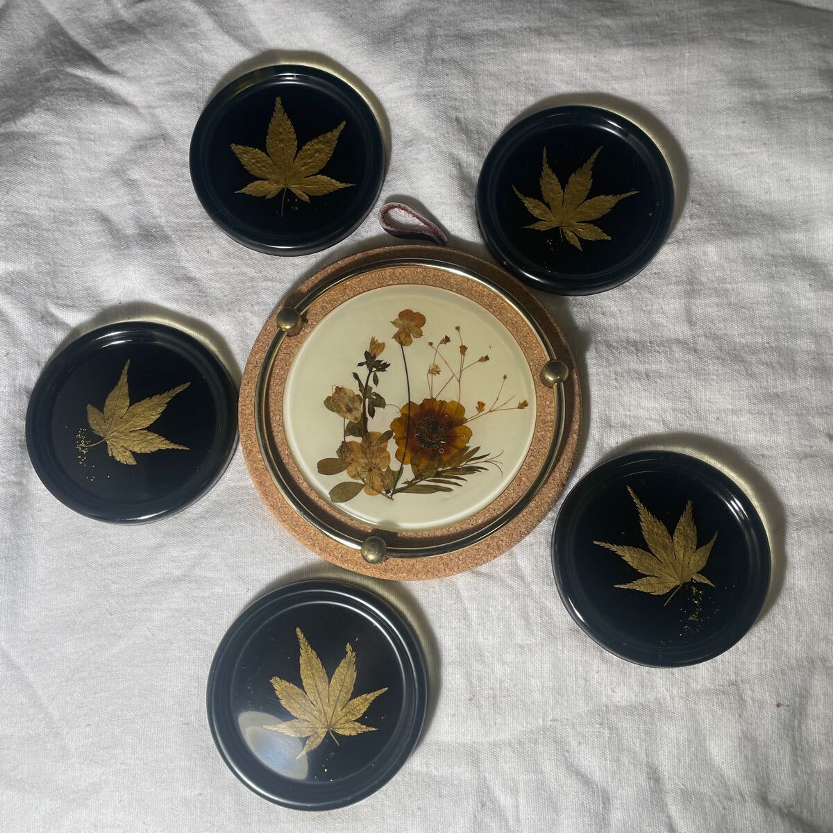 - ◯アームス N マルティスティックス S G ◯金色 押し花 紅葉の葉 鍋敷き コースタ◯Xー90