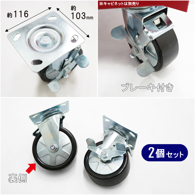 - 自在キャスター 2個セット ローラーキャビネット5段 TBR-5N/TBM-5RN/TBM-5BLN用 KIKAIYA