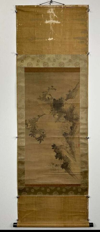 - 中国 清 方済 石榴小鳥 水墨絹本 肉筆