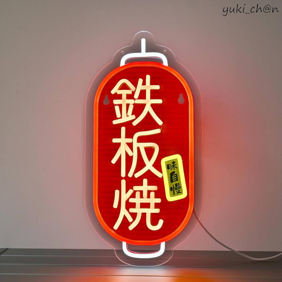 - ネオンサイン ネオンライト 鉄板焼 インテリア 壁掛けled neon管 多階段調光可 LED 店看板 レストラン 居酒屋 料理店 41×20cm