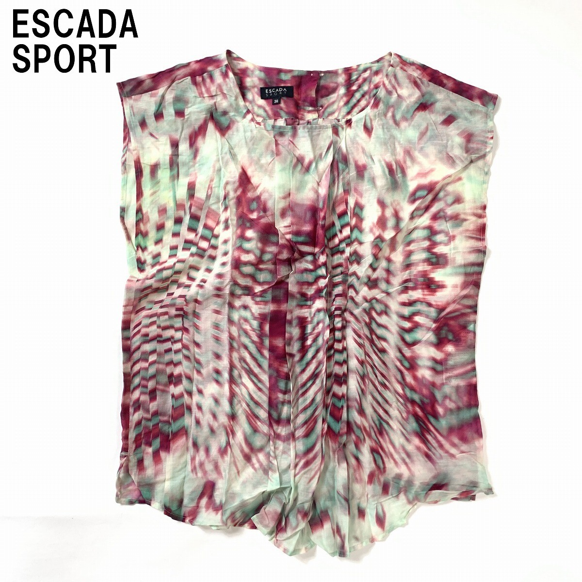 - ESCADA SPORT エスカーダスポーツ ノースリーブブラウス シャツ トップス ウール シルク 総柄 タイダイ 紫系 36 YC862