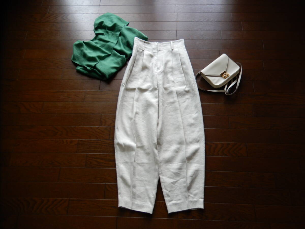 - 【Vin/ヴァン】リネンブレンド大人可愛いウエストゴム入りセンタープレスタックバレルレッグパンツ M スコットクラブ ヤマダヤ