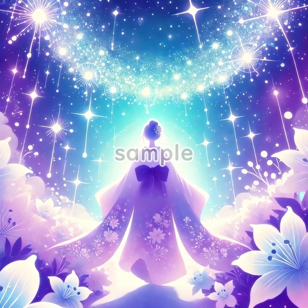 > A3 350dpi 巫女 七夕 天の川 オリジナル絵イラスト著作権フリー画像素材 232P Miko Tanabata milkyway Original picture image material