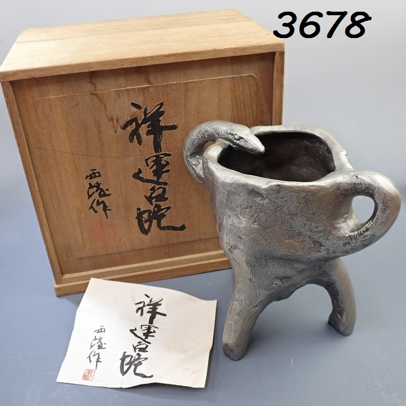 - ●FK-3678 北村西望 ブロンズ像 1977年 蛇「祥運白蛇」 共箱 20250805
