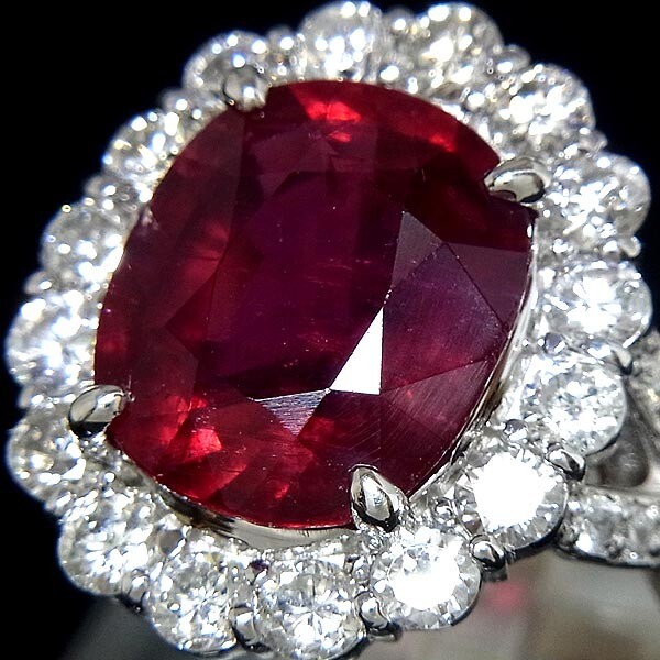 > Pt900 ルべライトトルマリンリング ルべライトトルマリン指輪 4.953ct D:1.39ct 8.6g 13号