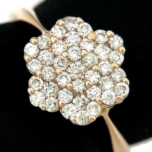 > K18PG ファッションリング フラワーデザイン ダイヤ指輪 D0.50ct 2.8g 11号