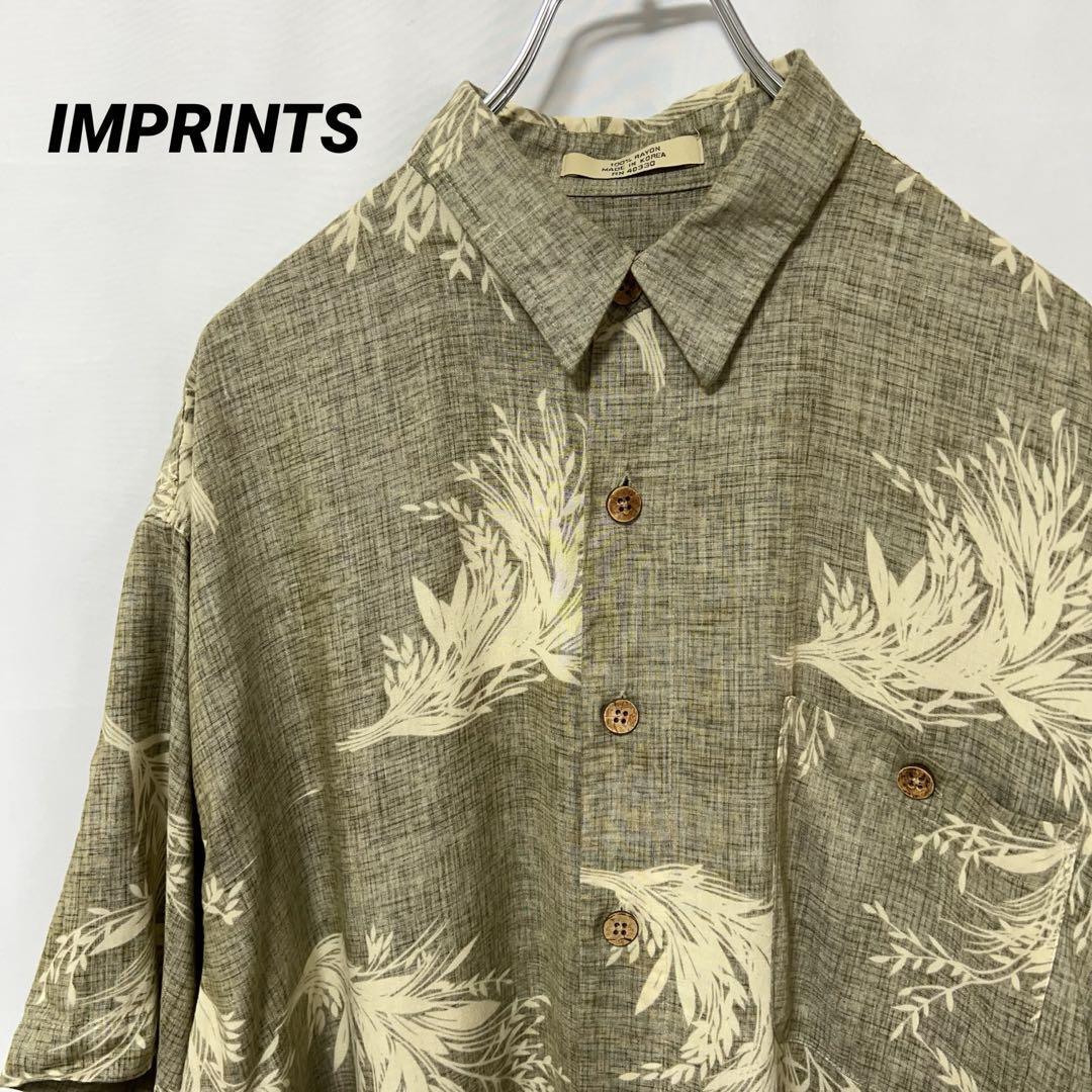 > N-5463 IMPRINTS アメリカ古着 アロハシャツ ハワイアンシャツ ボタニカル柄 リーフ柄 半袖 レーヨン L メンズ