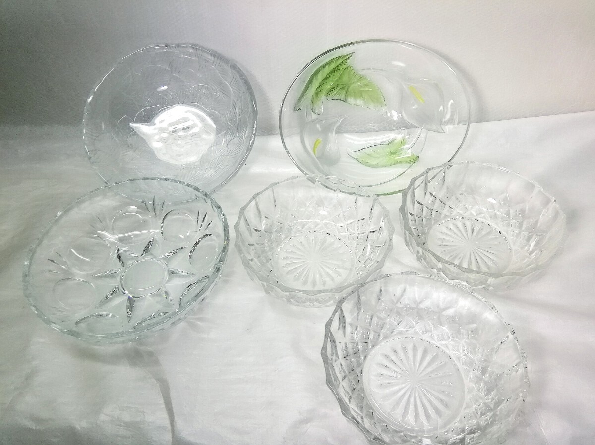 > ガラスボウル ガラス食器 まとめて6点 フランス製あり サラダボール/大鉢/中鉢 ガラス鉢 ガラス製品 中古 現状品 ⑥