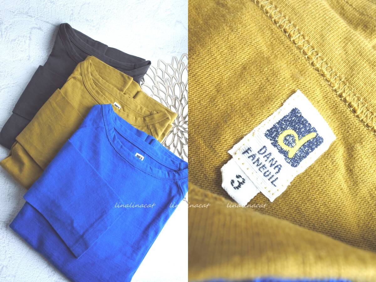 > 美品です 3(L)×3枚セット 長袖⑦ 日本製 ダナファヌル*ボートネック プルオーバー マスタード、ブルー、スミクロ