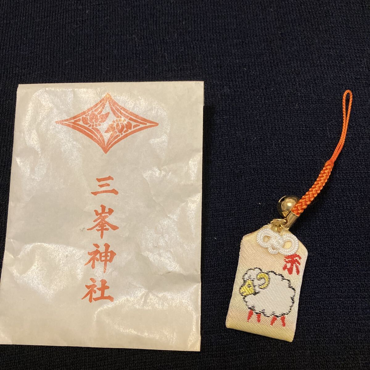 - 三峯神社 御守 未使用 干支 未 根付け キーホルダー 鈴付き 埼玉 秩父 昭和レトロ 平成レトロ ストラップ