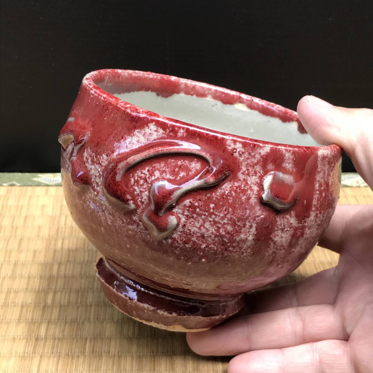 - 辰砂のお茶碗、河井寛次郎風?茶器 茶入 茶わん 小鉢 杯 珍味入れ(R70603_C)