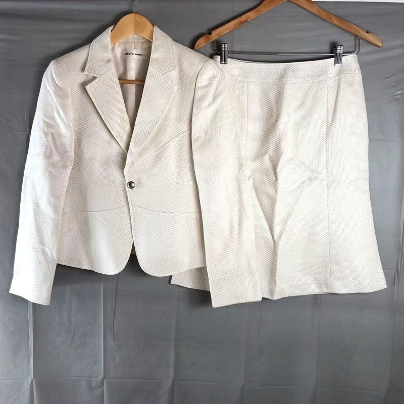 > スタイルコム Style com セットアップ スカートスーツ テーラード ラメ加工生地 日本製 裏地付き ホワイト 白 9サイズ 2025072300030