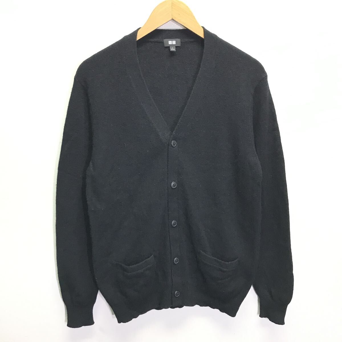 - 秋冬モノトーンコーデに◎【UNIQLO】ユニクロ ラムVネックカーディガン ニット セーター 大人カジュアル ビジネス ブラック L /Y34769ii
